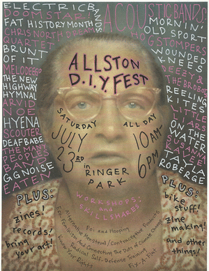 "Allston DIY Fest is a free, all-ages, sober festival celebrating DIY culture, freedom of individual expression, community building and alternative education, using a gift economy rather than money and oppressive consumerism.